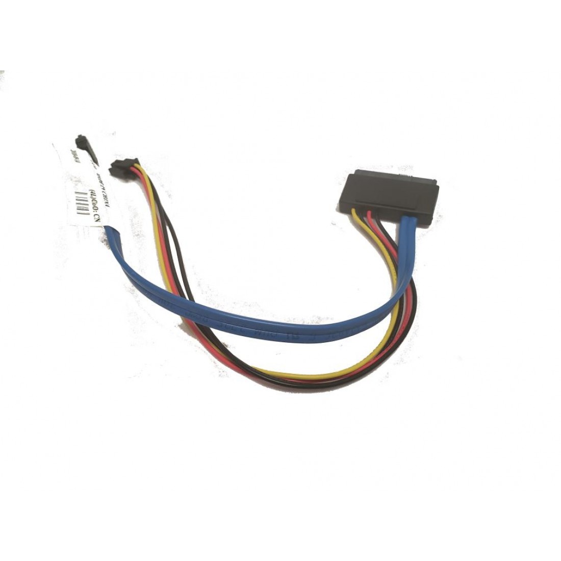 This cable will connect an internal media device with a 4x standard SAS connector to a system unit embedded controller. The cable has a standard 4x SAS connector on one end and a 1x SAS and 4-pin power connector (arranged 2x2) on the other.