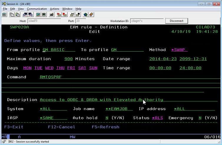- Automated rules triggered by day, date range, time, job name, IP address, IASP, Program or other environmental criteria