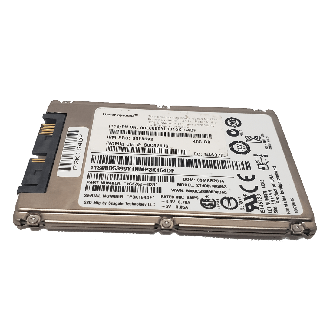 IBM ES17 387GB 1.8-inch SSD has 00E8692 part number and 59BE CCIN, is formatted with 528 byte sectors and is installed in 1.8-inch SAS bays of a IBM Power8 system unit, and can include a EB2W carrier tray. IBM ES17 59BE 00E8692 387GB SSD will have ES16, ES17, ES0K and ES0J SSD feature codes depending on the OS type. The IBM ES17 59BE 00E8692 387GB Solid State Drive is an IBM Enterprise SSD with third generation eMLC technology. The IBM ES17 387GB 1.8-inch SSD 00E8692 59BE includes warranty, free technical support by phone or email and is guaranteed for IBM maintenance and support contracts.