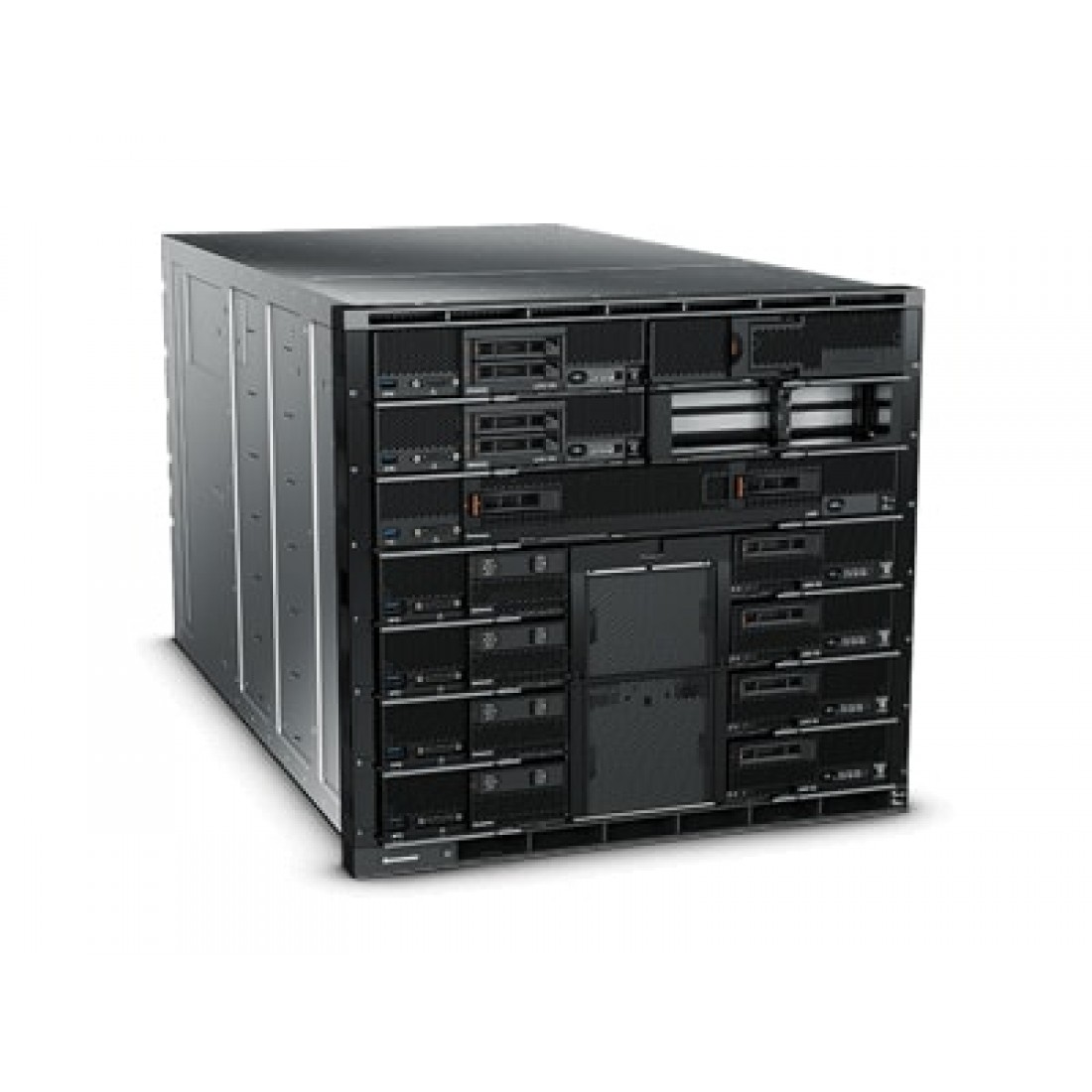 The Flex System Enterprise Chassis scales to meet business needs, works with multiple generations of technology, offers high availability, securely protects vital information, and maximizes uptime. 14 standard compute node bays in a 10U chassis maximize efficiency. Companies can customize this chassis using compute or management nodes with up to four networking modules in the rear. This chassis delivers high reliability through N+N or N+1 redundant power, a 3-phase power domain, and a passive mid-plane.