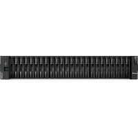 ThinkSystem DE4000F models are available in a 2U rack form-factor with 24 small form-factor (2.5-inch SFF) drives (2U24 SFF) and include two controllers, each with 8 GB or 32 GB cache for a system total of 16 GB or 64 GB. Universal 1/10 Gb iSCSI or 4/8/16 Gb Fibre Channel (FC) ports provide base host connectivity, and the host interface cards provide additional 1/10 Gb iSCSI or 4/8/16 Gb FC, 12 Gb SAS, 10/25 Gb iSCSI, or 8/16/32 Gb FC connections.